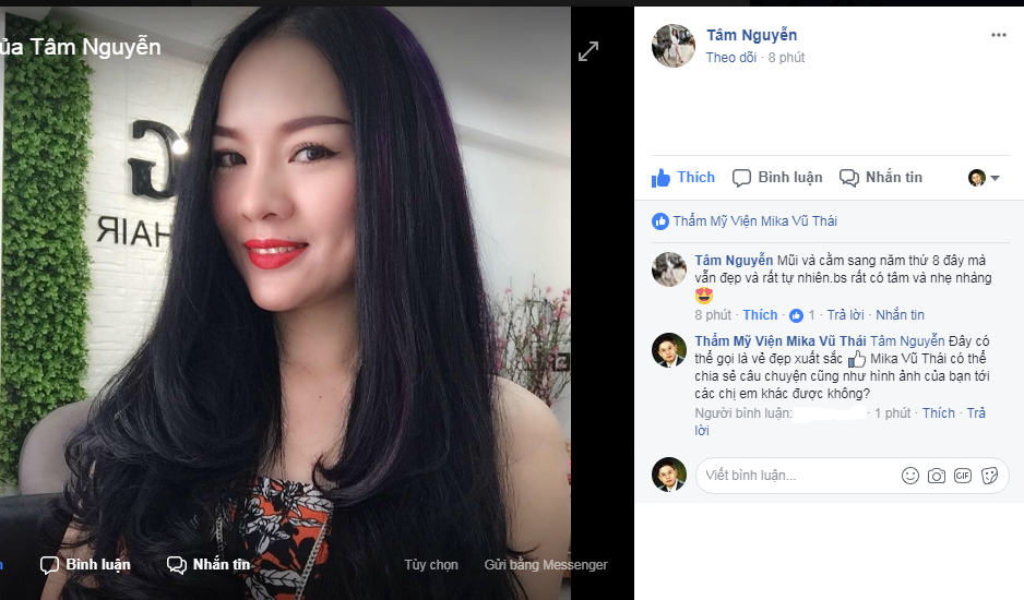 Tâm Nguyễn: “Mũi và cằm sang năm thứ 8 đây mà vẫn đẹp và rất tự nhiên. Bác sĩ rất có tâm và nhẹ nhàng”