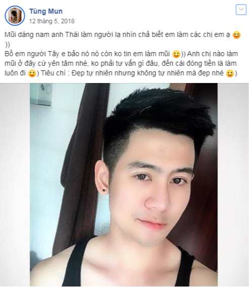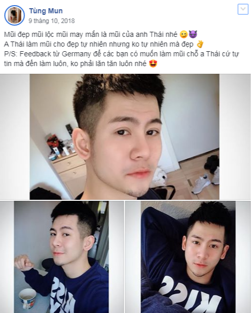 Anh chàng chia sẻ về quyết định nâng mũi cũng như kinh nghiệm của mình: “…Làm mũi anh Thái ưng như từng ưng cả nhà nhé. Không phải lăn tăn gì. Sang Đức trời lạnh đến giờ cũng vẫn bình thường ạ. Mũi đẹp mũi lộc mũi may mắn là mũi của anh Thái nhé.