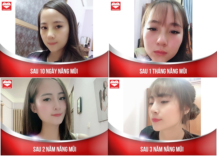 Cùng nhìn lại xem để thấy dáng mũi của cô nàng sau 10 ngày, 1 tháng, 2 năm và giờ đã 3 năm nâng mũi thay đổi ra sao. Có lẽ bạn đã dễ dàng nhận ra theo thời gian, dáng mũi càng trở nên mềm mại, tự nhiên hơn và không lộ dấu vết dao kéo, bị tụt sống, teo sụn….