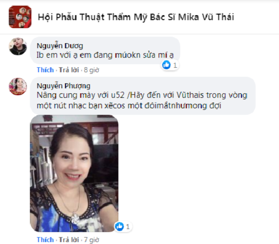 Gần đây, chị Nguyễn Phượng đã có dòng chia sẻ rất chân thành dưới post tham khảo kinh nghiệm làm đẹp cho đôi mắt của một bạn gái trong Hội phẫu thuật thẩm mỹ bác sĩ Mika Vũ Thái: : “Nâng cung mày với U52, hãy đến với Mika Vũ Thái trong vòng một nốt nhạc bạn sẽ có được đôi mắt như mong đợi”.