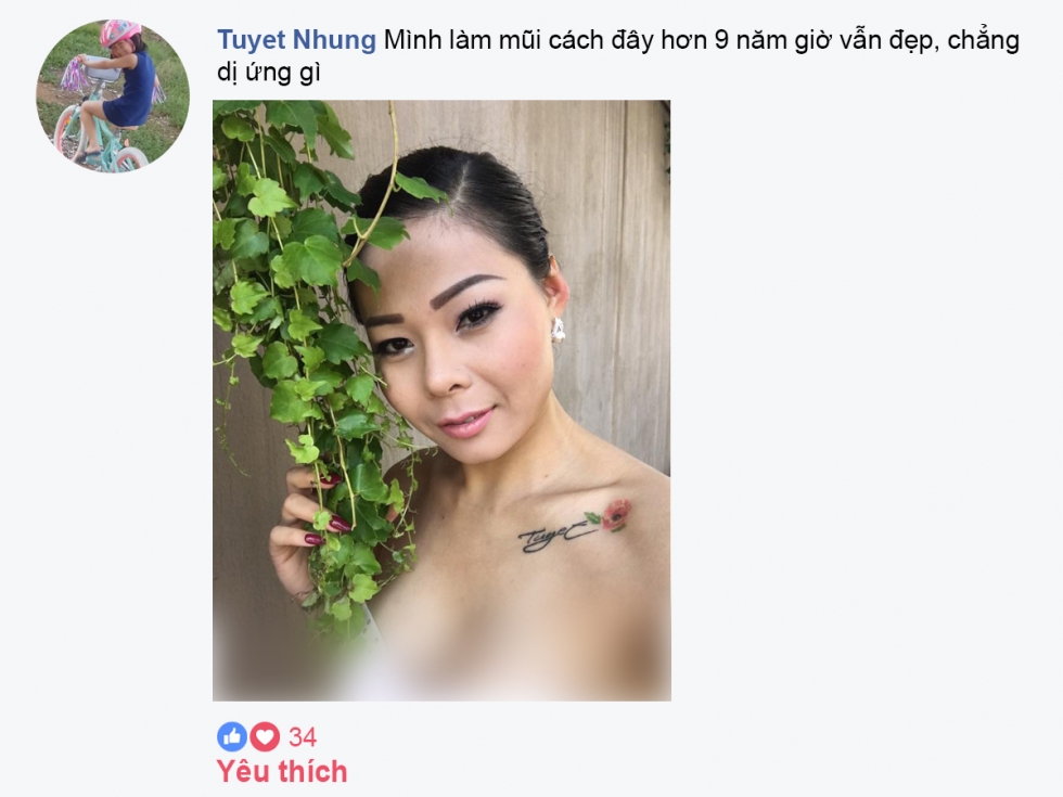 Trang nhớ lại cảm giác khi phẫu thuật khá nhẹ nhàng, không đau đớn như mình nghĩ vì bác sĩ Thái thực hiện phẫu thuật rất nhanh, bác gây tê một vài giây là cô đã không còn cảm giác rồi. Hậu phẫu, có sưng tím vài ngày nhưng sau đó giảm dần và cô có được dáng mũi thực sự ưng ý sau 3 tháng khi vết thương đã thực sự lành. Lúc này, dáng mũi của Trang cao thanh thoát, rất hợp với gương mặt, đẹp tự nhiên và nếu không do chính cô tiết lộ, là người quen từ lâu thì khó có thể nhận ra đó là vẻ đẹp của dao kéo.