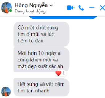 Nhớ lại những ngày đầu làm đẹp của mình, chị cũng tâm sự thêm: “Có một chú sưng tím ở mũi và lúc tiêm tê đau. Mới hơn 10 ngày thì ai cũng khen mũi và mắt đẹp xuất sắc ạ. Hết sưng và vết bầm tím cũng tan nhanh…Đẹp hơn cả mong đợi nên cảm ơn bác sĩ Vũ Thái rất nhiều.”