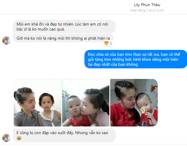Đặc biệt, với vấn đề có nên nâng mũi hay dao kéo không khi có con nhỏ, trẻ em trong gia đình thì kết quả dáng mũi hiện tại của Lily phun thêu chính là đáp án xác thực nhất. Bạn hoàn toàn có thể thẩm mỹ làm đẹp dù đã là một người mẹ, đang phải chăm con nhỏ hay trong gia đình có nhiều trẻ con. Mọi chuyện hoàn toàn có thể nếu bạn thực sự biết cách.