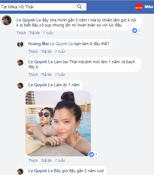 Ngay lập tức, vẻ đẹp của đôi mắt còn mãi với thời gian của Bạch Hằng đã tạo động lực của cho những cô nàng còn “ở ẩn” trong Hội PTTM lên tiếng chia sẻ về thành quả thẩm mỹ của mình. “Nổ phát súng” thứ 2 là cô gái Le Quynh Le: “Đây nha mình cũng nhấn nhà bác Vũ Thái gần 5 năm rồi mà tự nhiên lắm giờ không nói không ai biết đâu…Mình nhấn đợt đầu mới nổi 4 điểm đấy,còn bây giờ nhấn chả khác gì cắt nhiều điểm lắm nên nếp gấp sâu hơn” kèm theo đó là một loạt ảnh thể hiện nhan sắc của cô nàng.