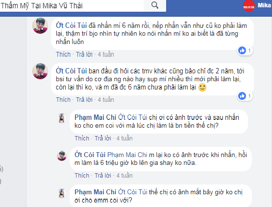 Một bạn có nick Ớt Còi Túi đồng cảm: “Mình được bác sĩ Vũ Thái nhấn mí 6 năm rồi, nếp nhấn vẫn như cũ không phải làm lại, thậm trí bây giờ nhìn tự nhiên ko nói nhấn mí ko ai biết là đã từng nhấn luôn. Ban đầu đi hỏi các tmv khác cũng bảo chỉ đc 2 năm, tới bsi tư vấn do cơ địa ng nào hay sụp mí nhiều thì mới phải làm lại, còn lại thì ko, và m đã đc 6 năm chưa phải làm lại…”