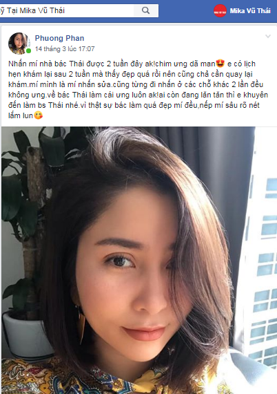 Những chị em đã làm đẹp tại Mika Vũ Thái cũng chia sẻ thêm về tay nghề của bác sĩ Vũ Thái làm đẹp rất nhẹ nhàng và tự nhiên. Bạn Hương Ly cũng khoe thêm ảnh của mình sau một năm nhấn mí mắt tại Mika Vũ Thái: