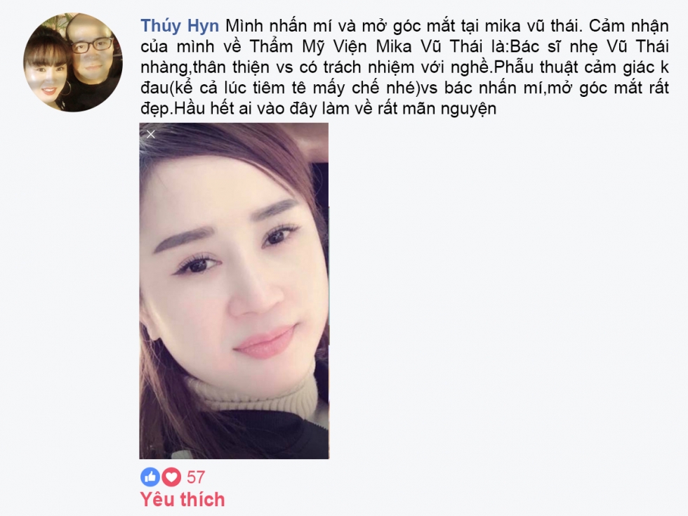 Hội phẫu thuật thẩm mỹ tại Mika Vũ Thái . Chị nhớ lại khi đó phẫu thuật rất nhẹ nhàng, bác sĩ mát tay, làm xong không bị sưng hay bầm tím nhiều mà mắt đã trẻ đẹp luôn.