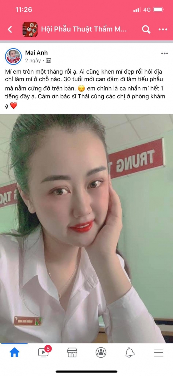 Trước khi nhấn mí tại Mika Vũ Thái, Mai Anh đã đăng đàn mong được lắng nghe kinh nghiệm, hỏi han các chị em trong group rất nhiều. Sau một thời gian tìm hiểu, được các chị em đã làm cổ vũ, cô nàng cuối cùng quyết định nhấn mí mắt tại Mika Vũ Thái.