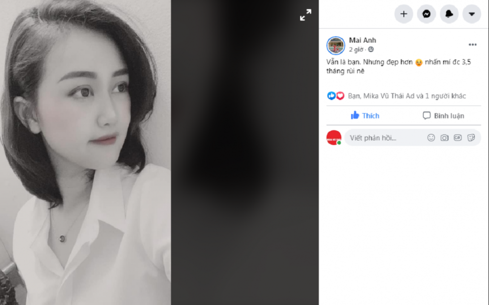 Thấm thoát thời gian qua đi, gần 4 tháng sau, khi nếp mí đã thực sự như ý, Mai Anh không quên lời hứa, đã cập nhật trạng thái ngắn gọn nhưng vô cùng sâu sắc trong group: “ Vẫn là bạn nhưng đẹp hơn. Nhấn mí được 3,5 tháng tại Mika Vũ Thái”