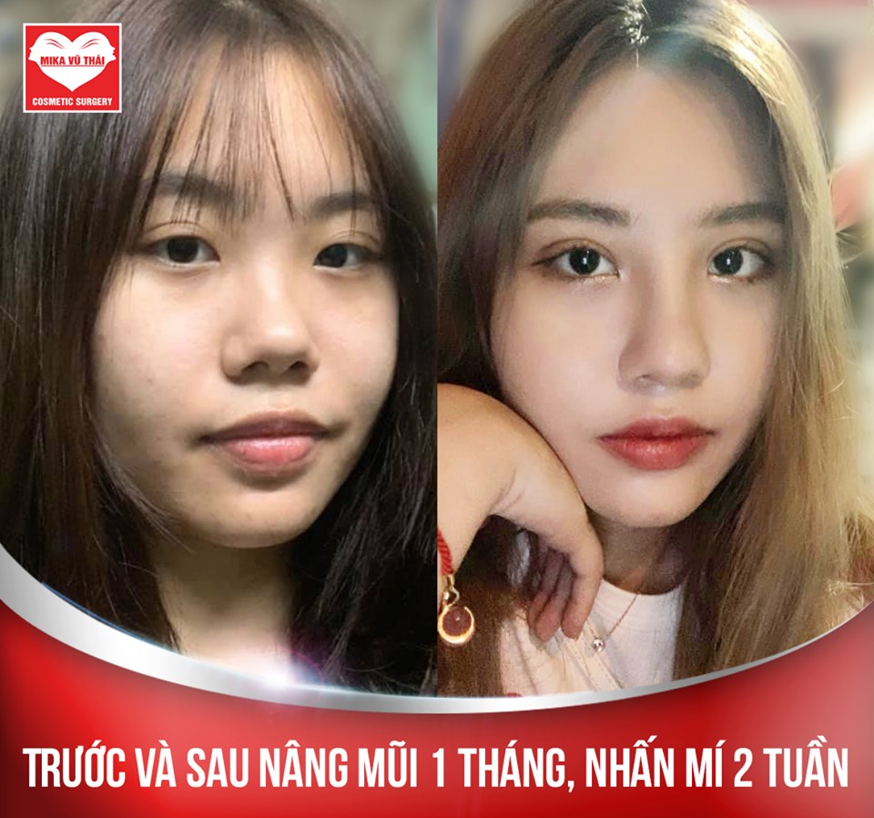 Bạn có thể chiêm ngưỡng thêm hình ảnh một số khách hàng vừa nâng mũi và nhấn mí tại Mika Vũ Thái: