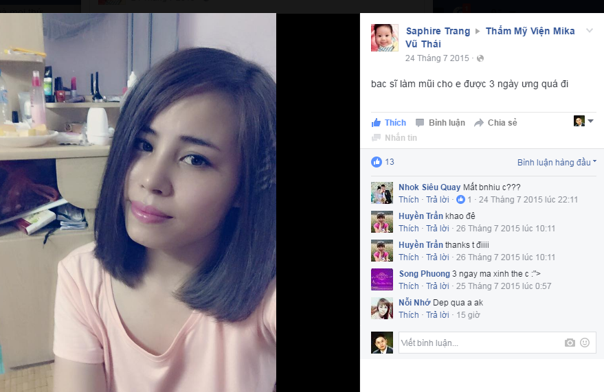 Cô nàng Phi Yến sau 1 tháng phẫu thuật nâng mũi tại Mika Vũ Thái?