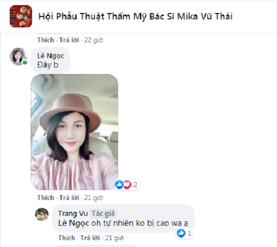 Những bức hình mà Lê Ngọc đăng tải chia sẻ với các chị em trong Hội phẫu thuật thẩm mỹ Bác sĩ Mika Vũ Thái và nhận được rất nhiều sự quan tâm, hỏi han kinh nghiệm từ các chị em khác.