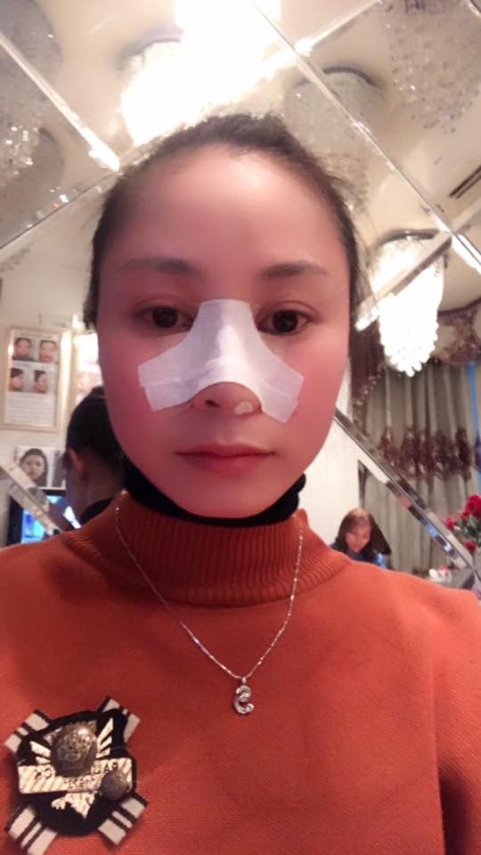 Ngọc Ánh sau khi vừa bước ra từ phòng phẫu thuật nâng mũi