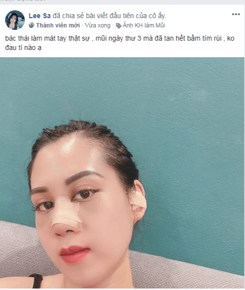 Lee Sa bày tỏ: “Bác Thái làm mát tay thực sự, mũi ngày thứ 3 đã tan hết bầm tím rồi, không đau tí nào”