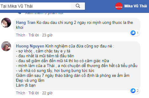 Ngay lập tức, bài đăng của Thúy Nga thu hút rất nhiều chị em đã nâng mũi cũng bày tỏ chung cảm nhận: nâng mũi không hề đau đớn như họ tưởng trước đây. Cùng đọc một vài chia sẻ của các chị em khác để hiểu rõ hơn điều này: