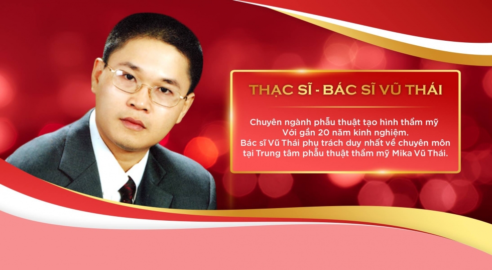 Thạc sĩ , bác sĩ Vũ Thái là người phụ trách chuyên môn duy nhất tại Mika Vũ Thái – với 20 năm kinh nghiệm trong ngành phẫu thuật thẩm mỹ.