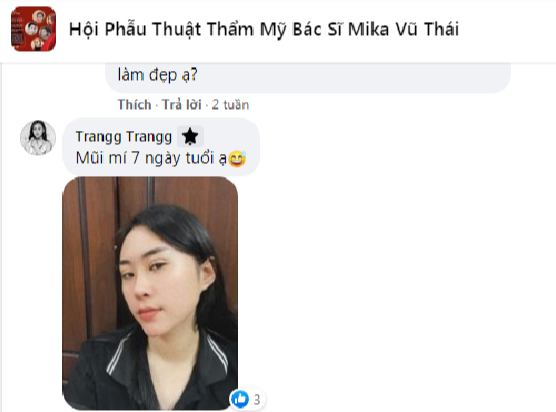 Mới đây, trong Hội phẫu thuật thẩm mỹ Bác sĩ Mika Vũ Thái, không ít chị em đã đăng ảnh khoe dáng mũi của mình. Có những người vừa kết thúc ca phẫu thuật 2 tiếng, có bạn thì nâng mũi được 3 ngày, 5 ngày, 7 ngày….Một bộ phận đông đảo khác thì lại chia sẻ những bức hình thể hiện dáng mũi hoàn hảo của bản thân sau 5 năm, 7 năm và thậm chí 10 năm, 14 năm sau khi thẩm mỹ tại Mika Vũ Thái.