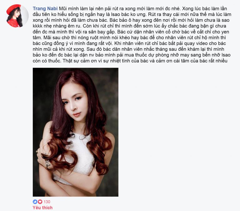 Chia sẻ của Trang Nabi với các chị em đang quan tâm nâng mũi trong Hội phẫu thuật thẩm mỹ bác sĩ Mika Vũ Thái