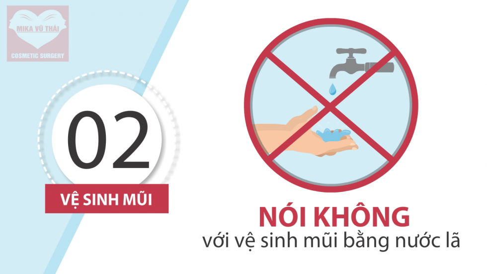 Bên cạnh đó, cũng đừng dùng các loại dung dịch sát trùng quá mạnh và khi vệ sinh mũi thì chỉ dùng gạc mềm thấm nhẹ bề mặt vết thương cho khô chứ không dùng khăn mặt chà qua chà lại làm lệch đường chỉ khâu khiến vết mổ sau khi lành sẽ không được đẹp.