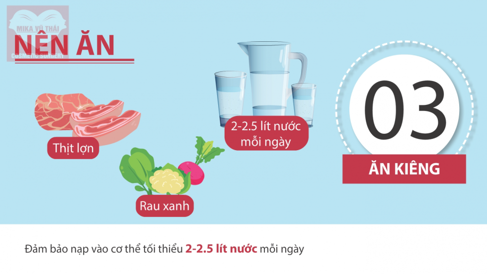+Đảm bảo nạp vào cơ thể tối thiểu 2-2.5 lít nước mỗi ngày chứ không phải là chờ cơ thể khát rồi mới đi uống.