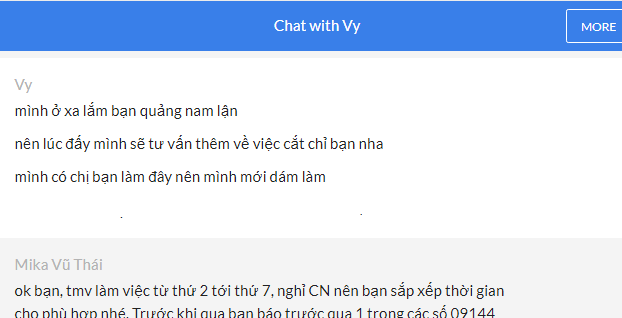 Không chỉ Hà Nội mà rất nhiều chị em ở xa cũng tìm tới tư vấn và làm đẹp tại Mika Vũ Thái Khi ngắm nhìn những dáng mũi tự nhiên của các bạn, Thu Thuy đã khá hài lòng. Sau đó cô dành thêm thời gian tìm hiểu kỹ hơn về thẩm mỹ viện cũng như bác sĩ Vũ Thái thì cô cảm thấy có thể gửi trao niềm tin cho vị bác sĩ 20 năm kinh nghiệm, đã thực hiện hơn 20,000 ca phẫu thuật này được. Nghĩ là làm, cô quyết định đặt vé máy bay sớm nhấn trong lịch trình của mình để ra Bắc thăm khám và phẫu thuật nâng mũi ngoài này.